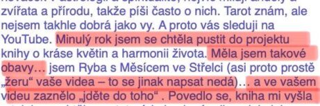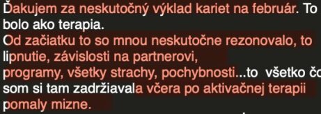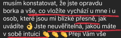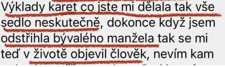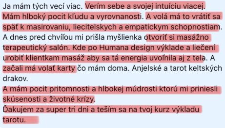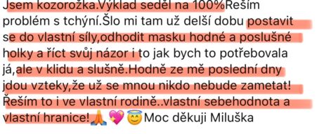 "Po výkladu karet a aktivační terapii odešla závislost na partnerovi, pochybnosti, strachy a lpění."
