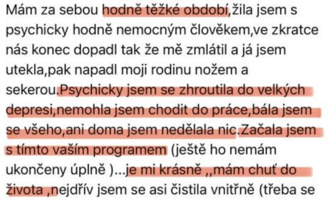 "Psychicky jsem se zhroutila, měla jsem velké deprese, nemohla jsem chodit do práce. Díky Vám je mi nyní krásně