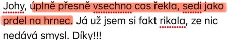"Všechno cos řekla, sedí jak prdel na hrnec."