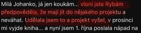 "Předpověděla jste, že mám jít do projektu. Udělala jsem to a projekt vyšel."