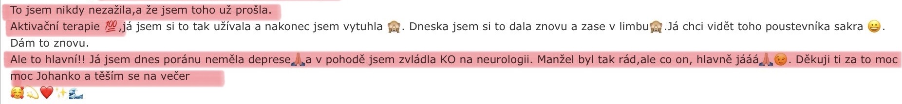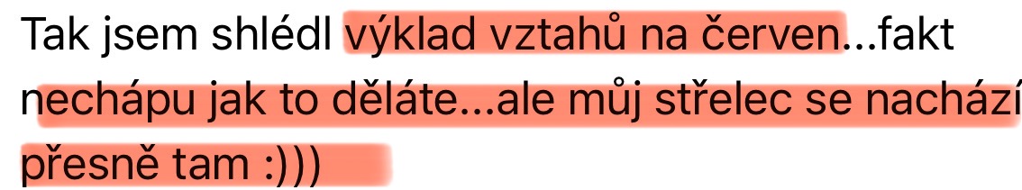 "Po výkladu karet a aktivační terapii odešla závislost na partnerovi, pochybnosti, strachy a lpění."